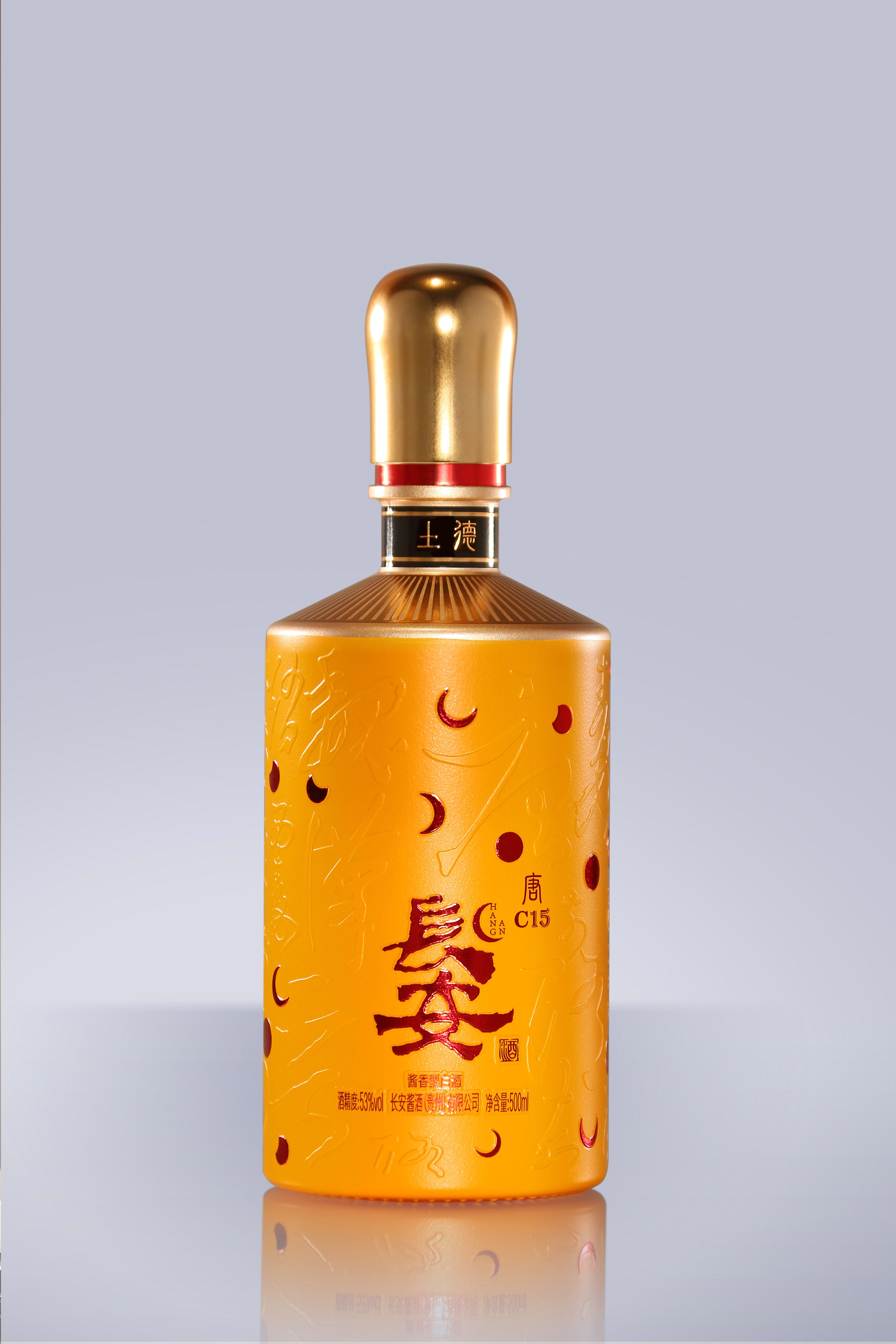 “长安酱酒-唐C15”瓶身明黄璀璨,酒体酱香幽雅,绵柔醇厚。